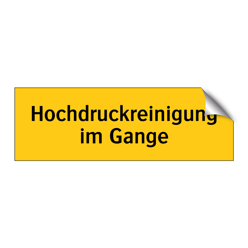 Warnschild mit dem Text Hochdruckreinigung im Gange
