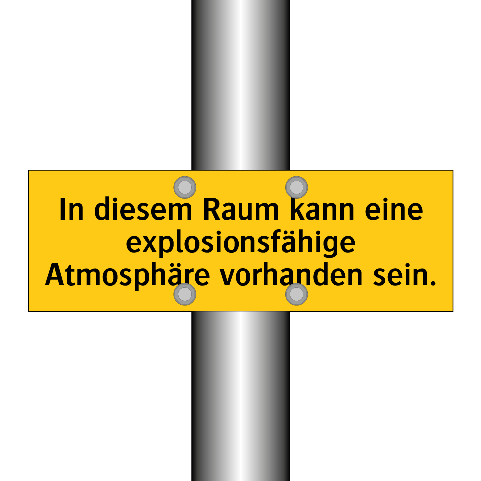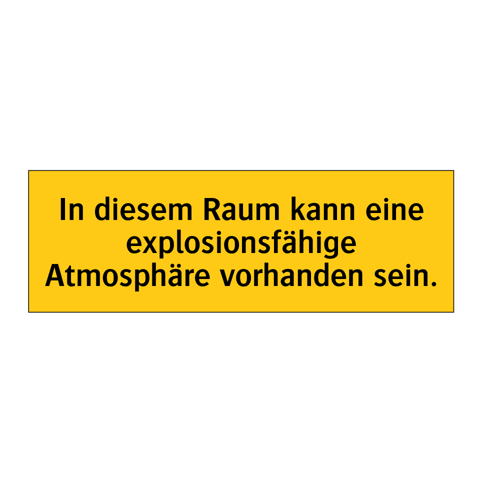 Warnschild mit dem Text In diesem Raum kann eine explosionsfähige Atmosphäre vorhanden sein.