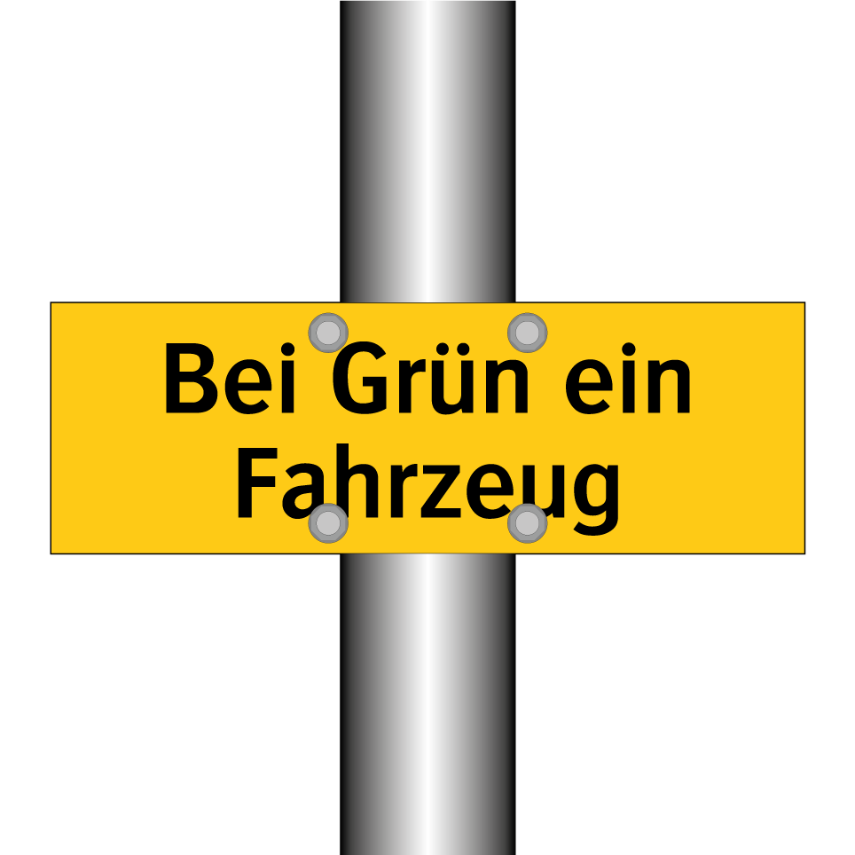 Warnschild mit dem Text Bei Grün ein Fahrzeug