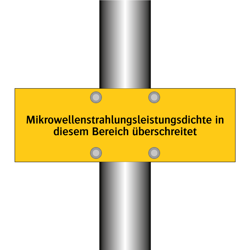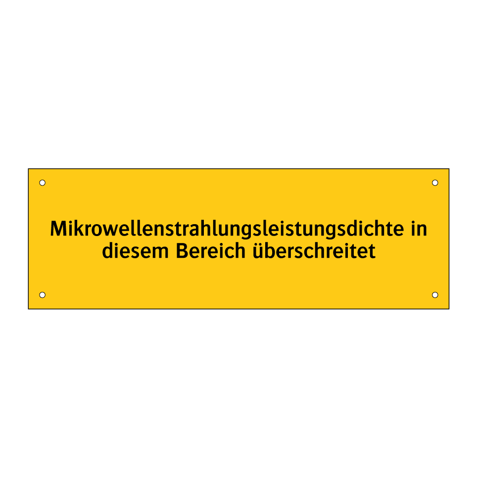 Warnschild mit dem Text Mikrowellenstrahlungsleistungsdichte in diesem Bereich überschreitet
