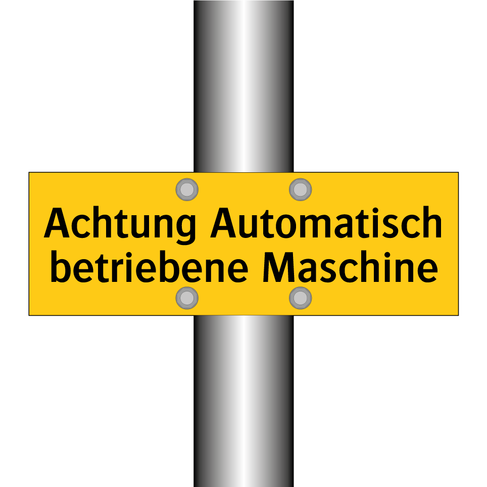 Warnschild mit dem Text Achtung Automatisch betriebene Maschine