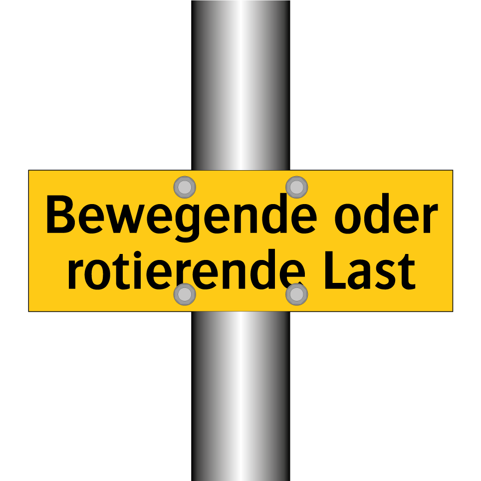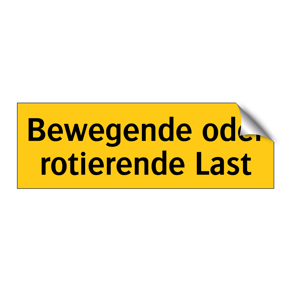 Warnschild mit dem Text Bewegende oder rotierende Last