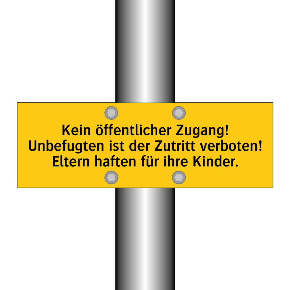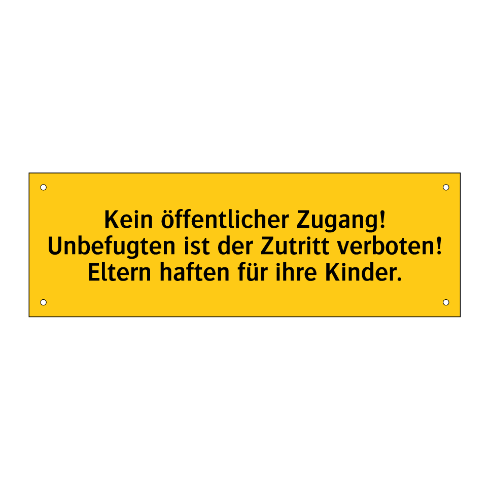 Warnschild mit dem Text Kein öffentlicher Zugang! Unbefugten ist der Zutritt verboten! Eltern haften für ihre Kinder.