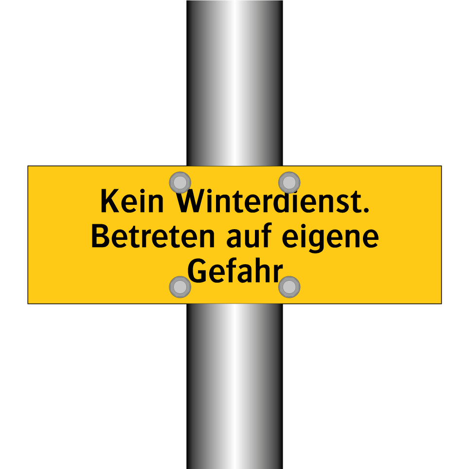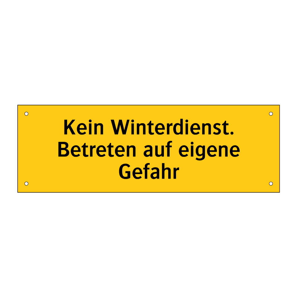 Warnschild mit dem Text Kein Winterdienst. Betreten auf eigene Gefahr