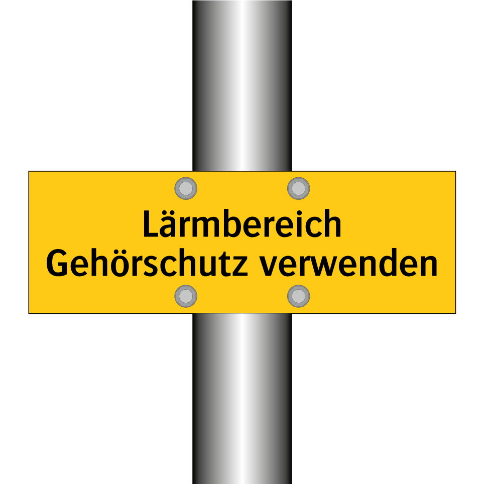 Warnschild mit dem Text Lärmbereich Gehörschutz verwenden