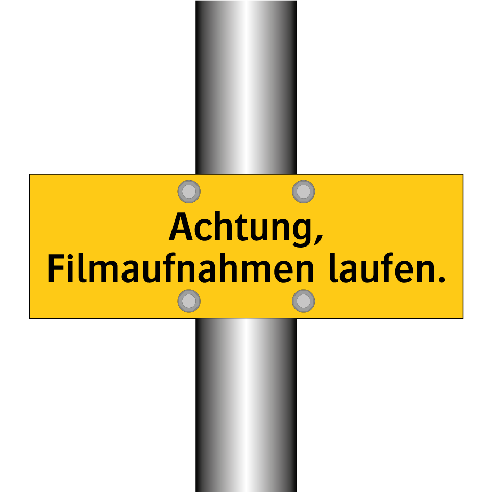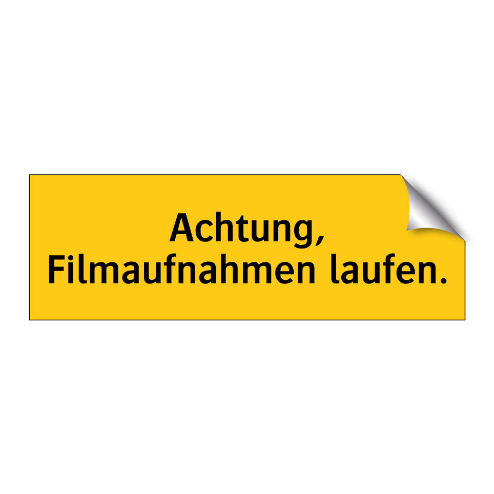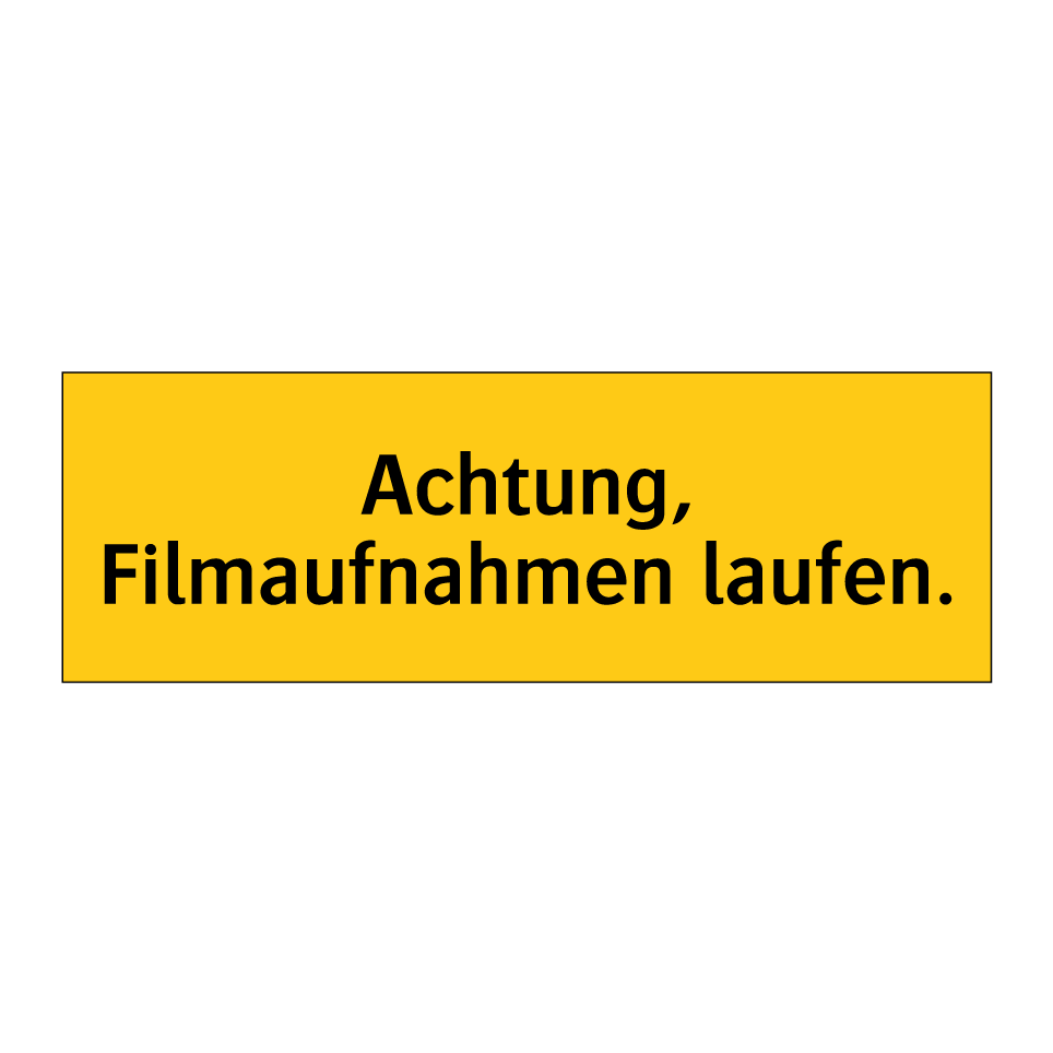 Warnschild mit dem Text Achtung, Filmaufnahmen laufen.