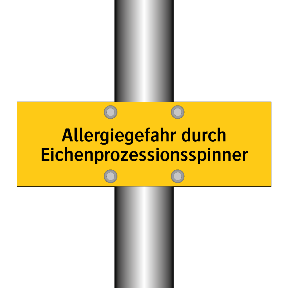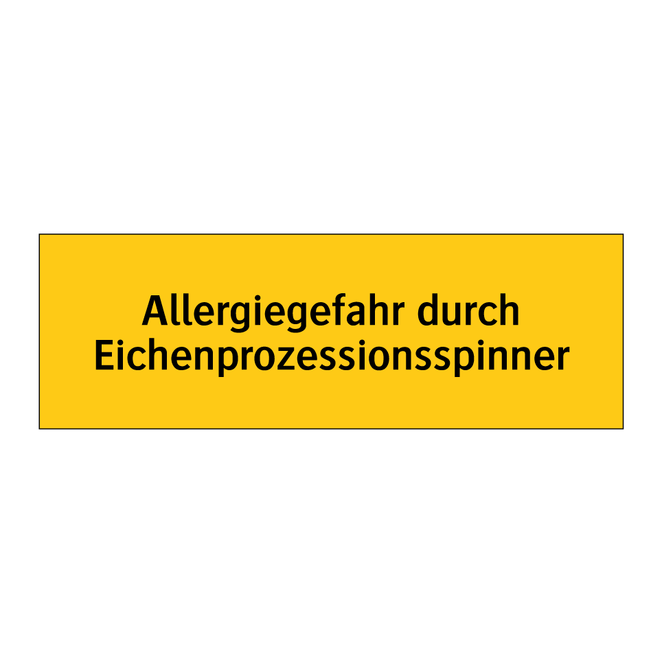 Warnschild mit dem Text Allergiegefahr durch Eichenprozessionsspinner
