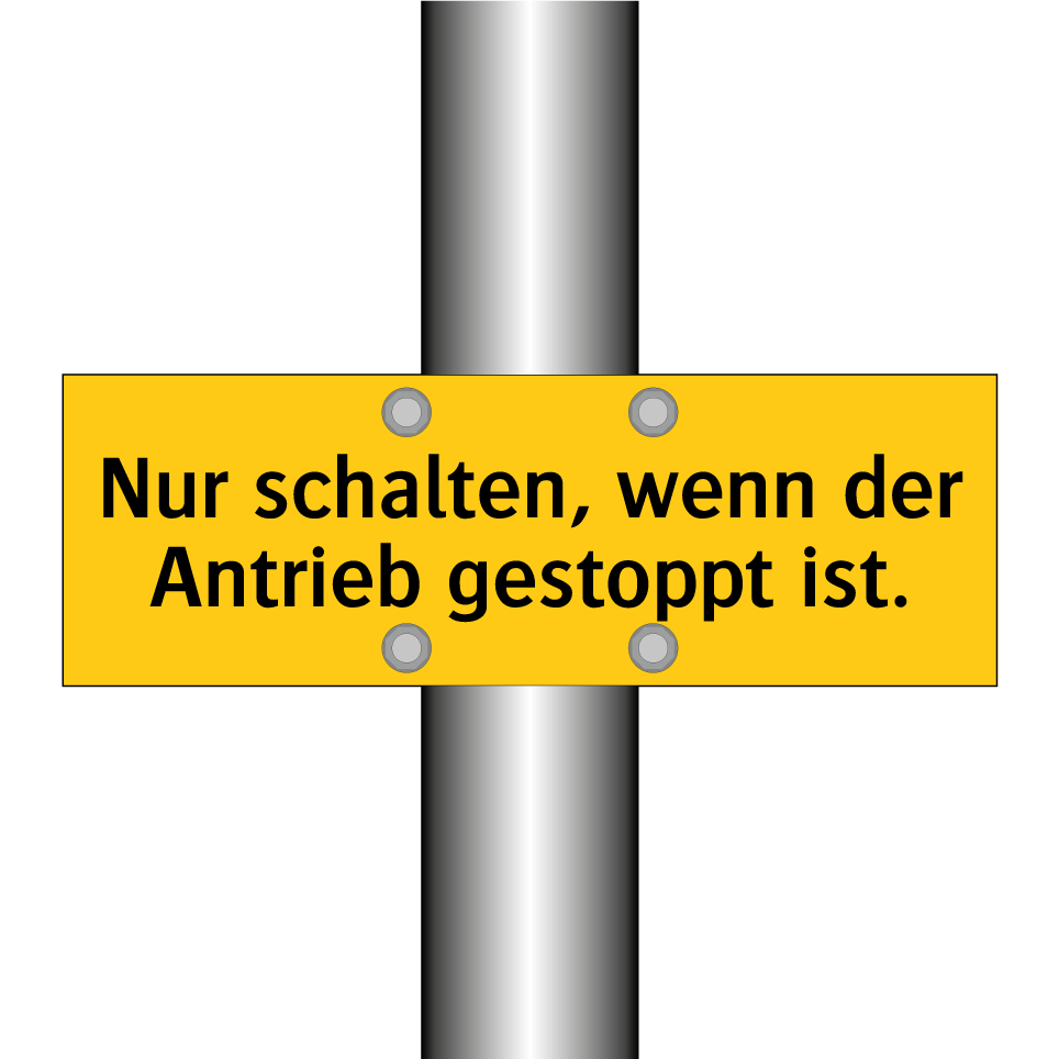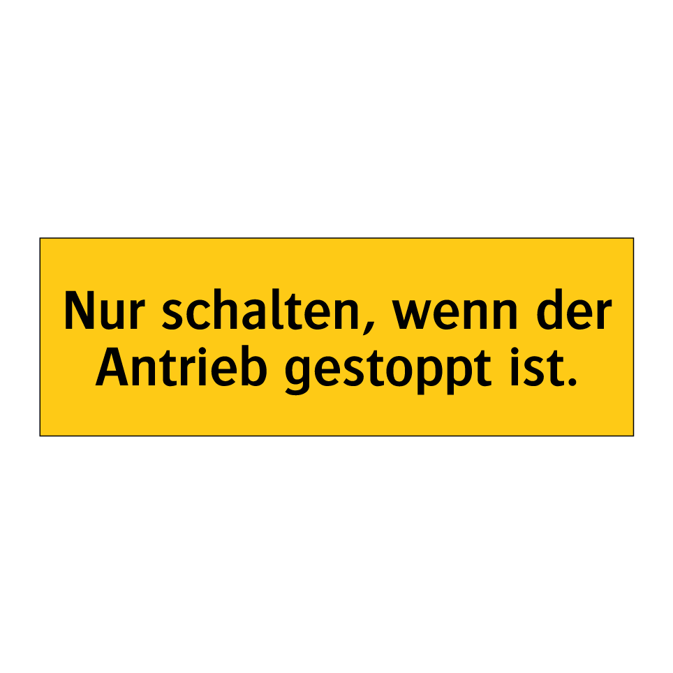 Warnschild mit dem Text Nur schalten, wenn der Antrieb gestoppt ist.