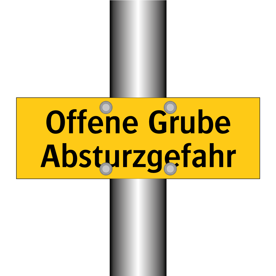 Warnschild mit dem Text Offene Grube Absturzgefahr