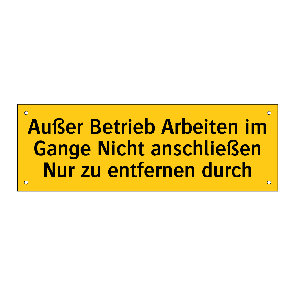 Warnschild mit dem Text Außer Betrieb Arbeiten im Gange Nicht anschließen Nur zu entfernen durch