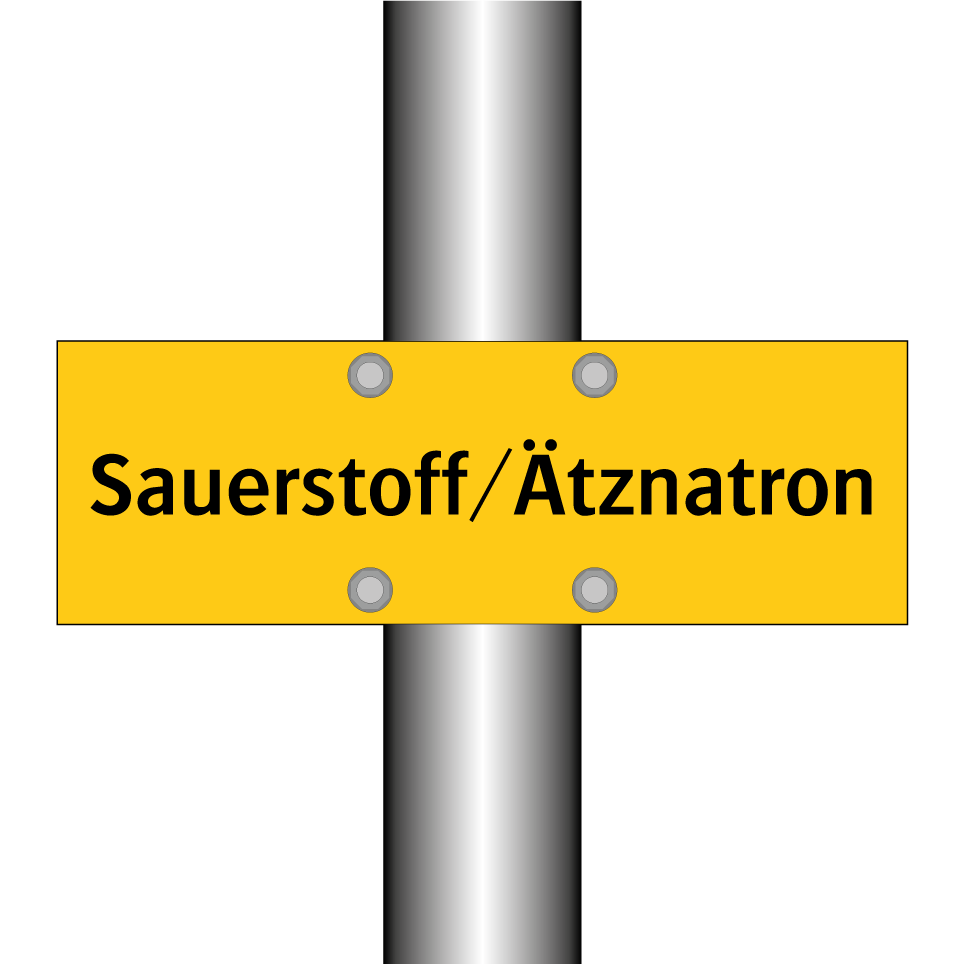 Warnschild mit dem Text Sauerstoff/Ätznatron