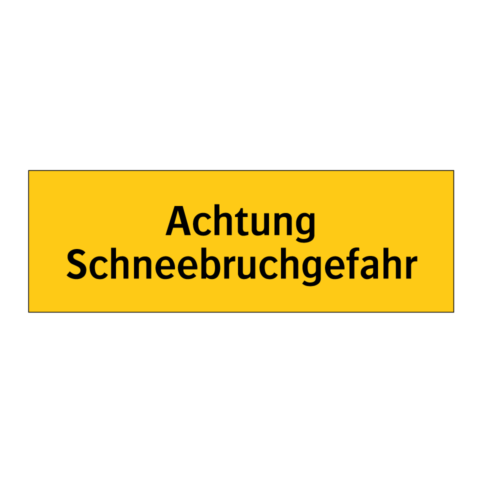 Warnschild mit dem Text Achtung Schneebruchgefahr