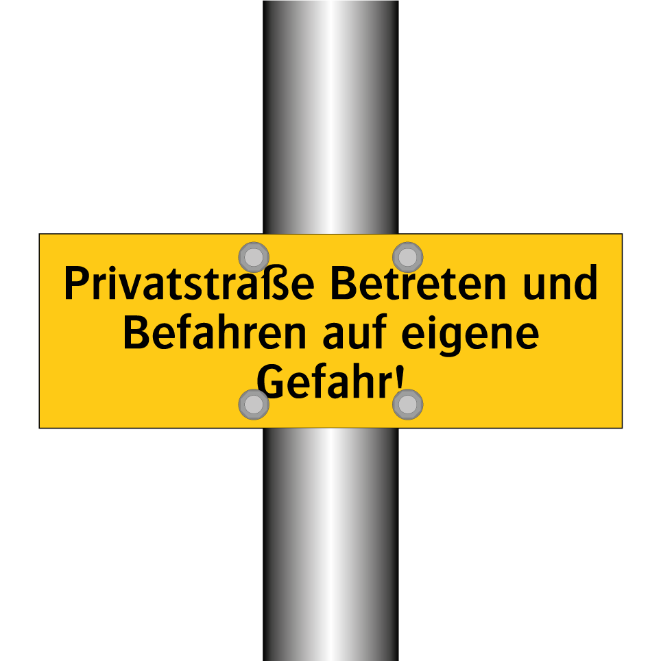 Warnschild mit dem Text Privatstraße Betreten und Befahren auf eigene Gefahr!