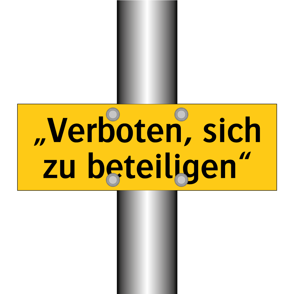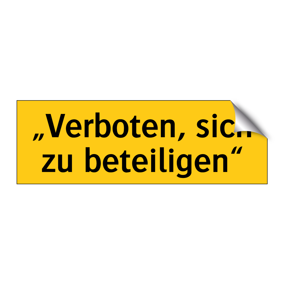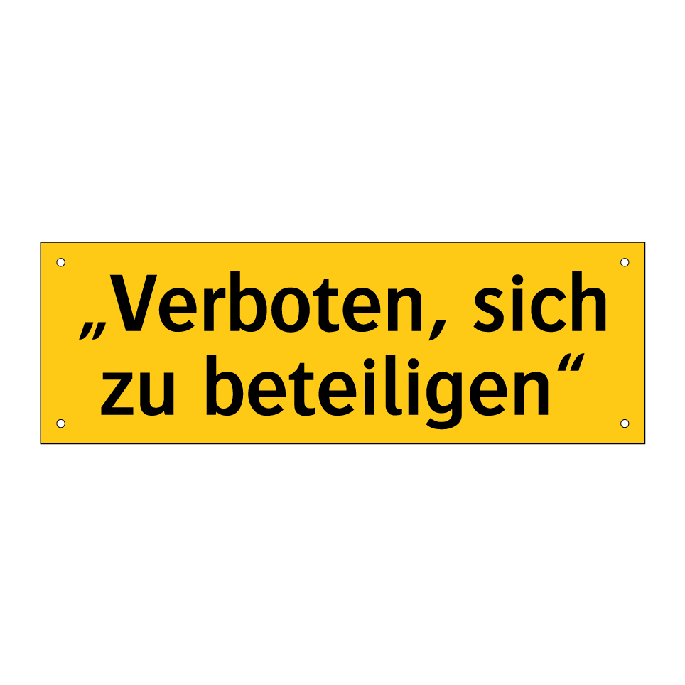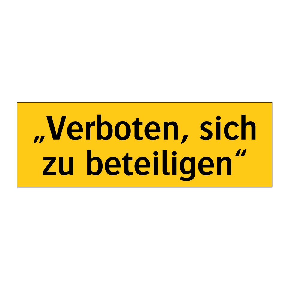 Warnschild mit dem Text „Verboten, sich zu beteiligen“
