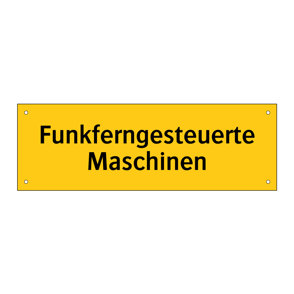 Warnschild mit dem Text Funkferngesteuerte Maschinen