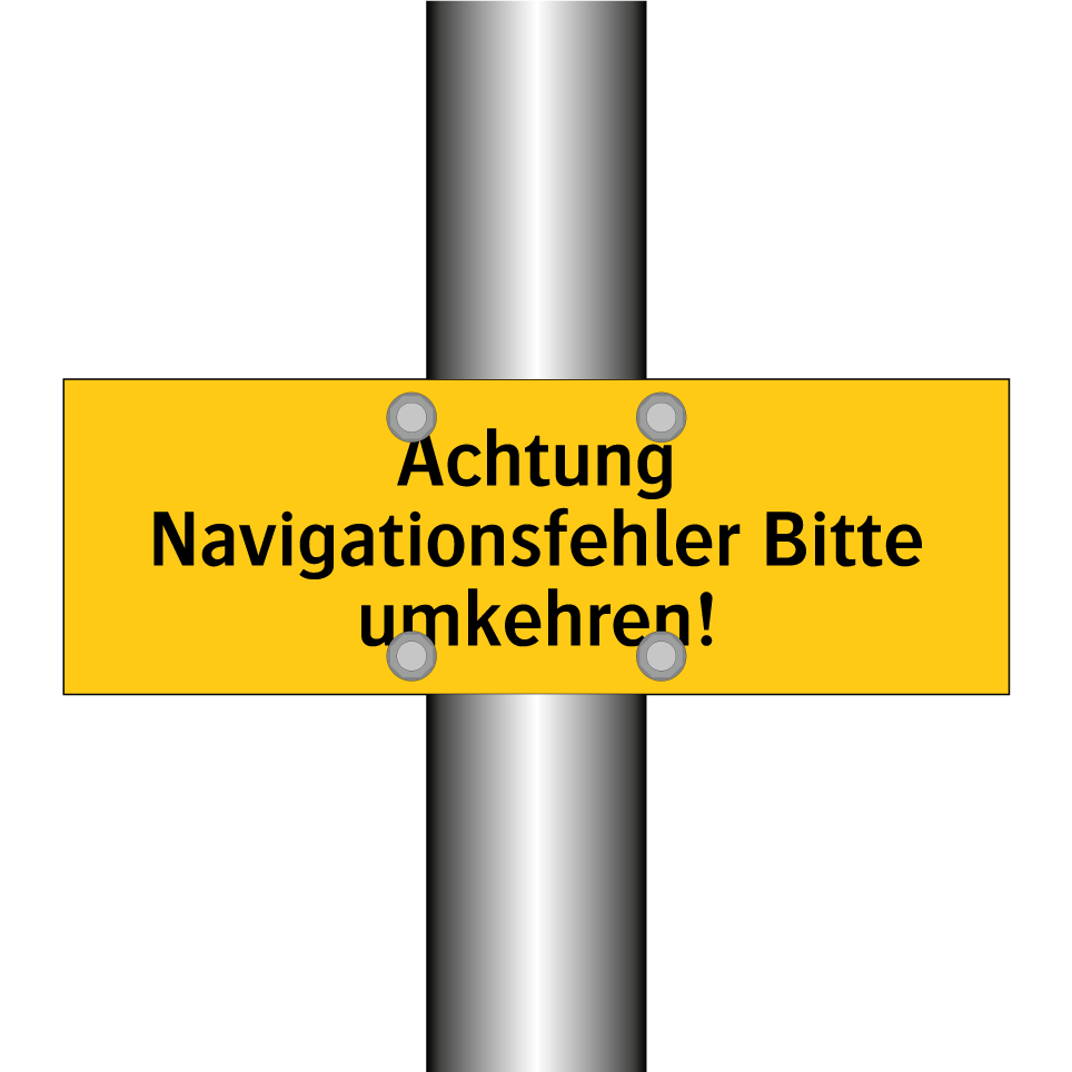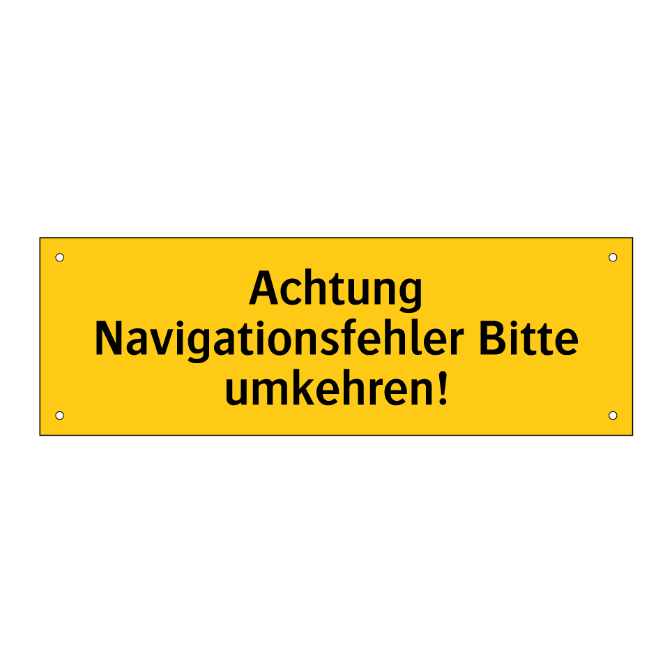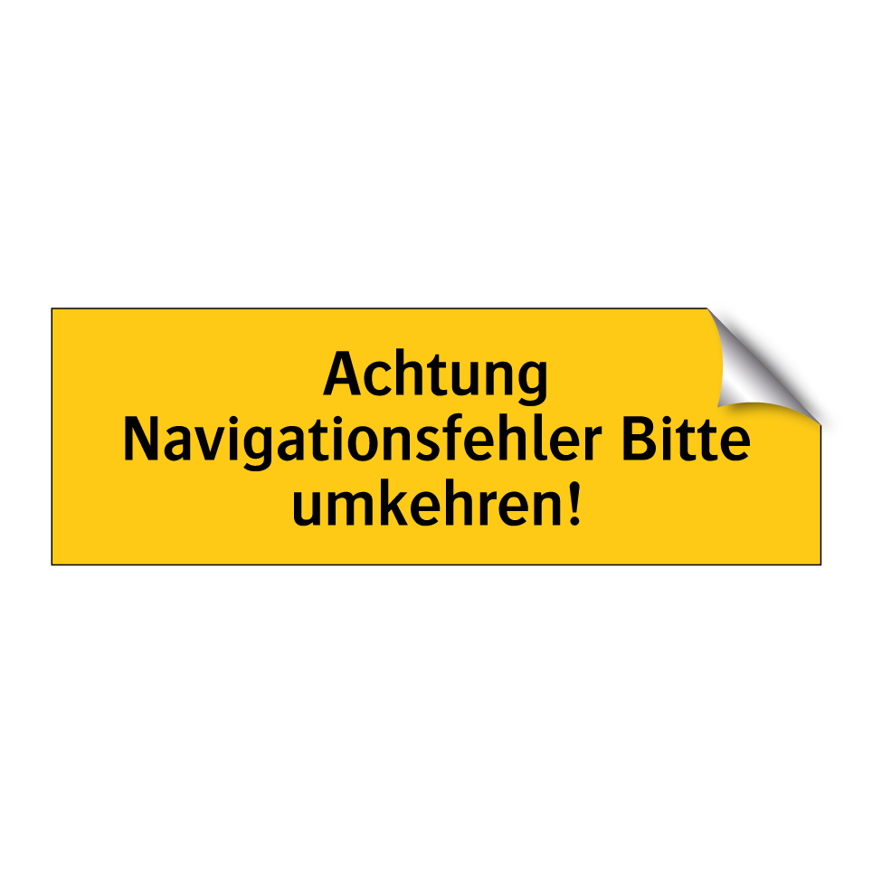 Warnschild mit dem Text Achtung Navigationsfehler Bitte umkehren!