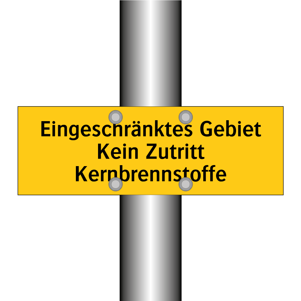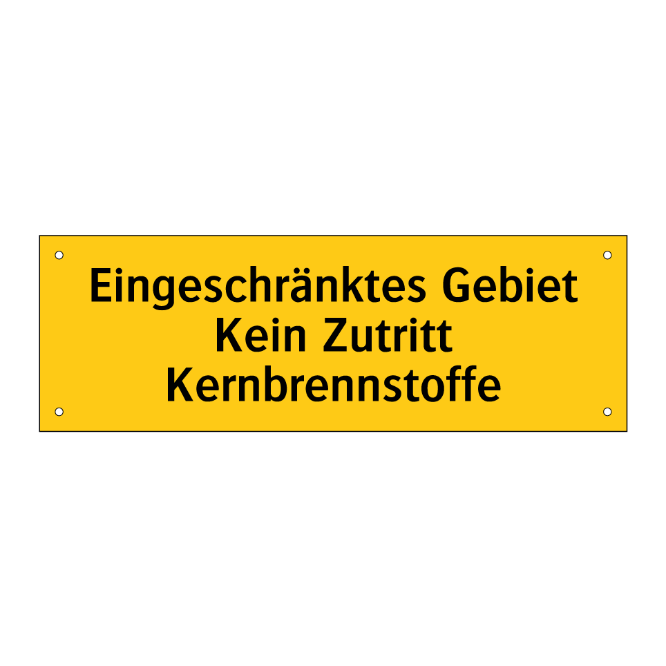 Warnschild mit dem Text Eingeschränktes Gebiet Kein Zutritt Kernbrennstoffe