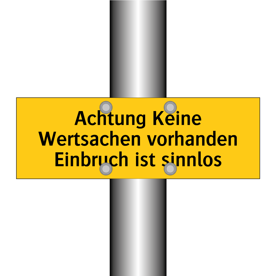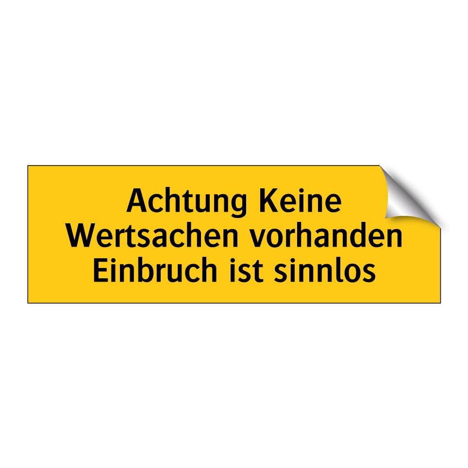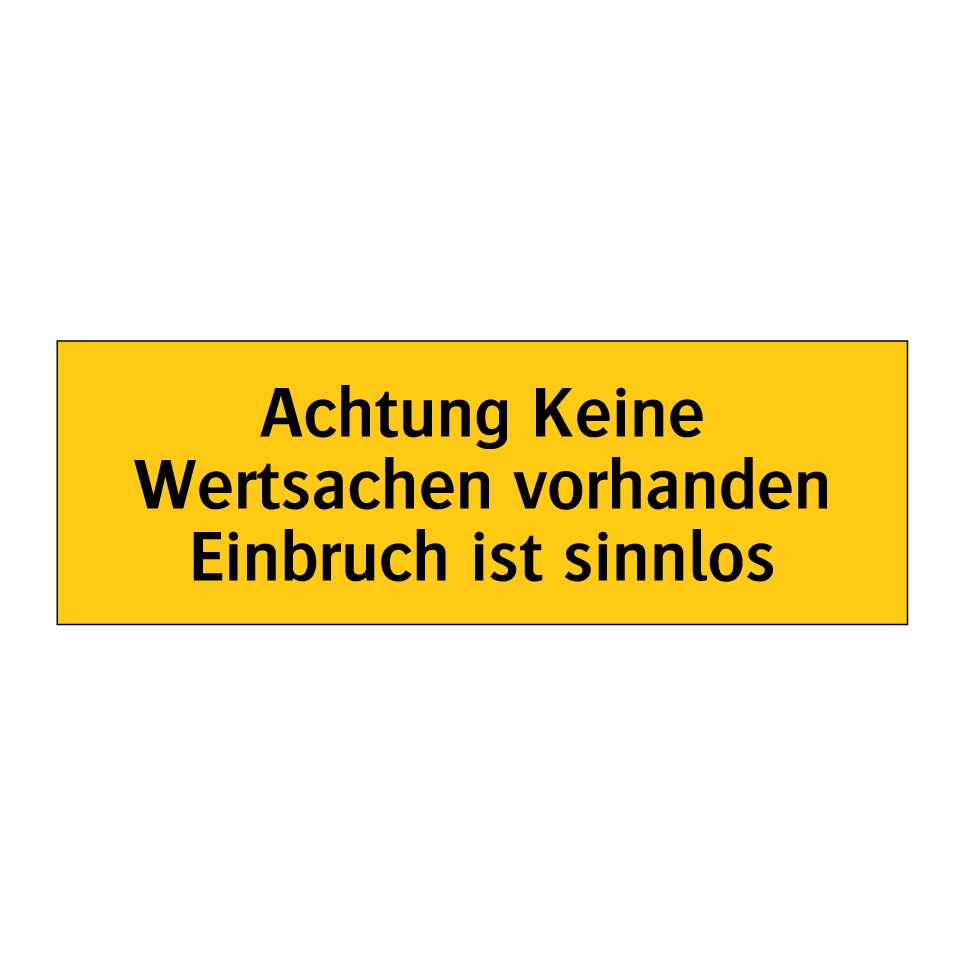 Warnschild mit dem Text Achtung Keine Wertsachen vorhanden Einbruch ist sinnlos