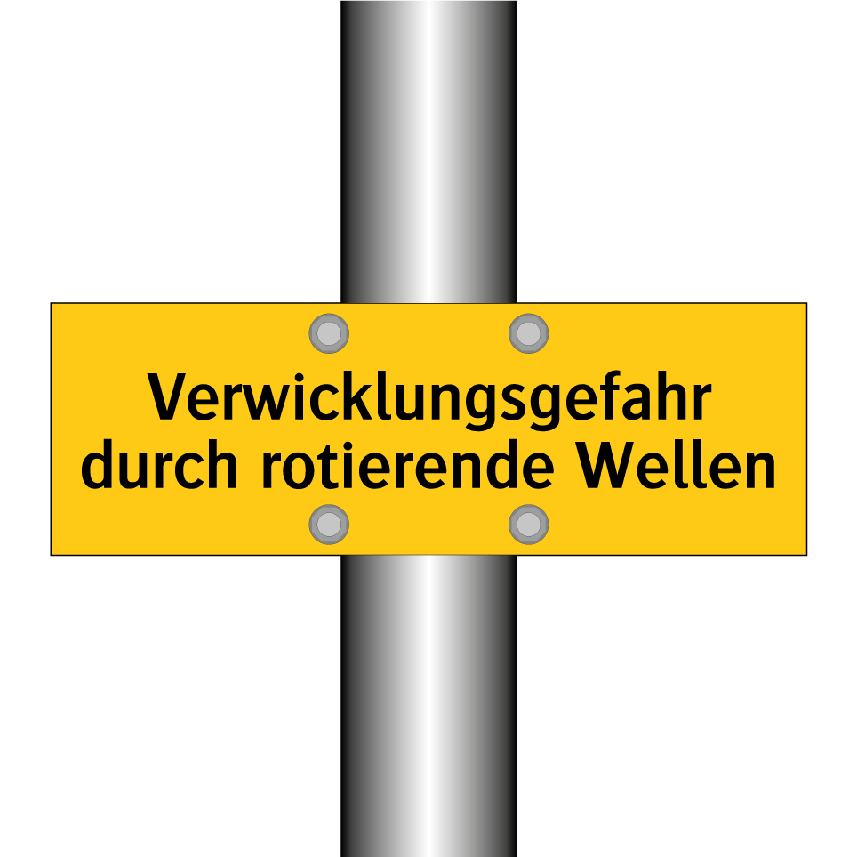 Warnschild mit dem Text Verwicklungsgefahr durch rotierende Wellen
