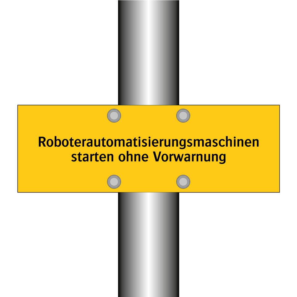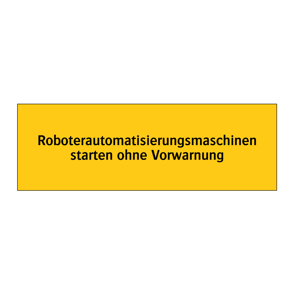Warnschild mit dem Text Roboterautomatisierungsmaschinen starten ohne Vorwarnung