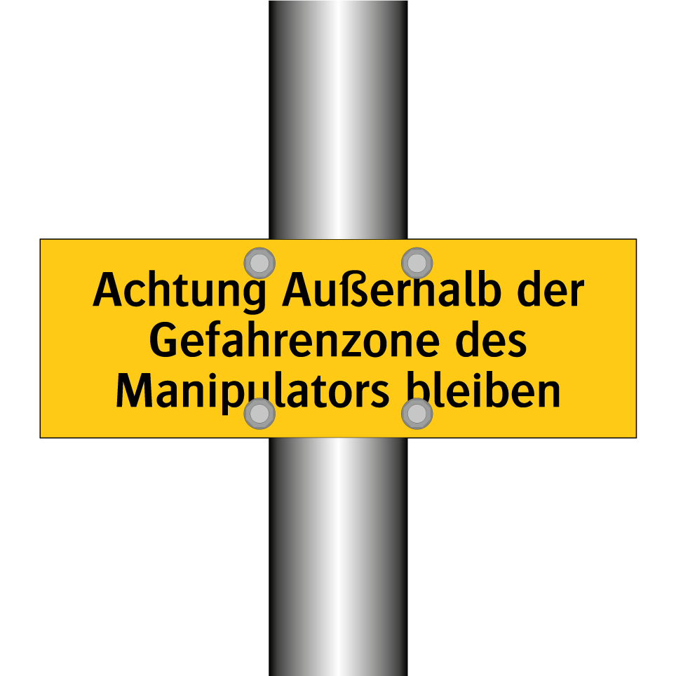 Warnschild mit dem Text Achtung Außerhalb der Gefahrenzone des Manipulators bleiben