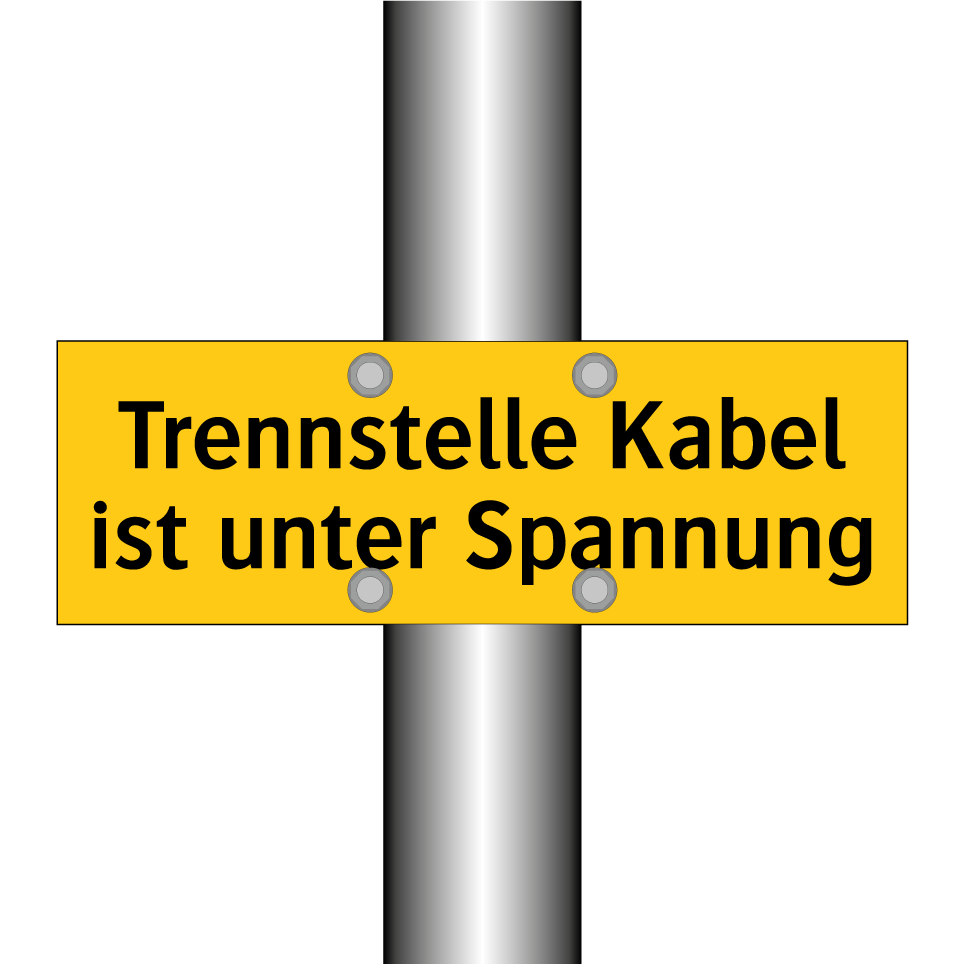 Warnschild mit dem Text Trennstelle Kabel ist unter Spannung