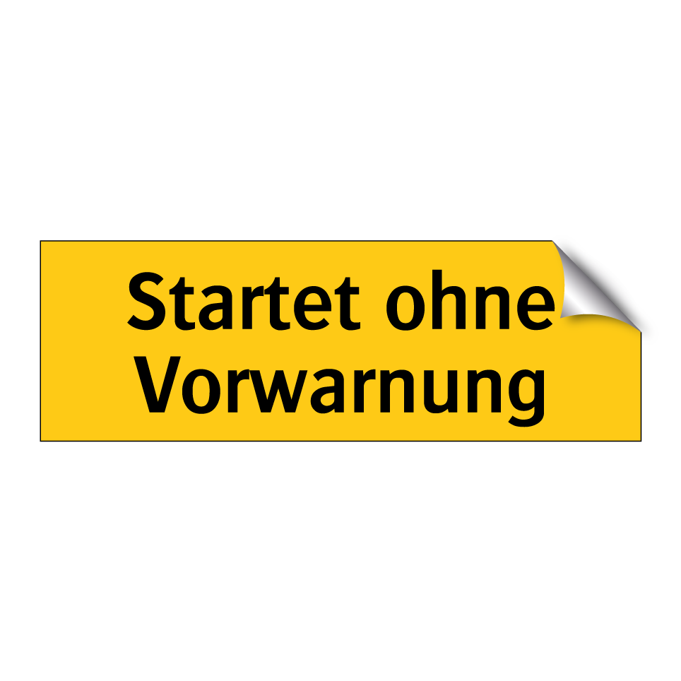 Warnschild mit dem Text Startet ohne Vorwarnung