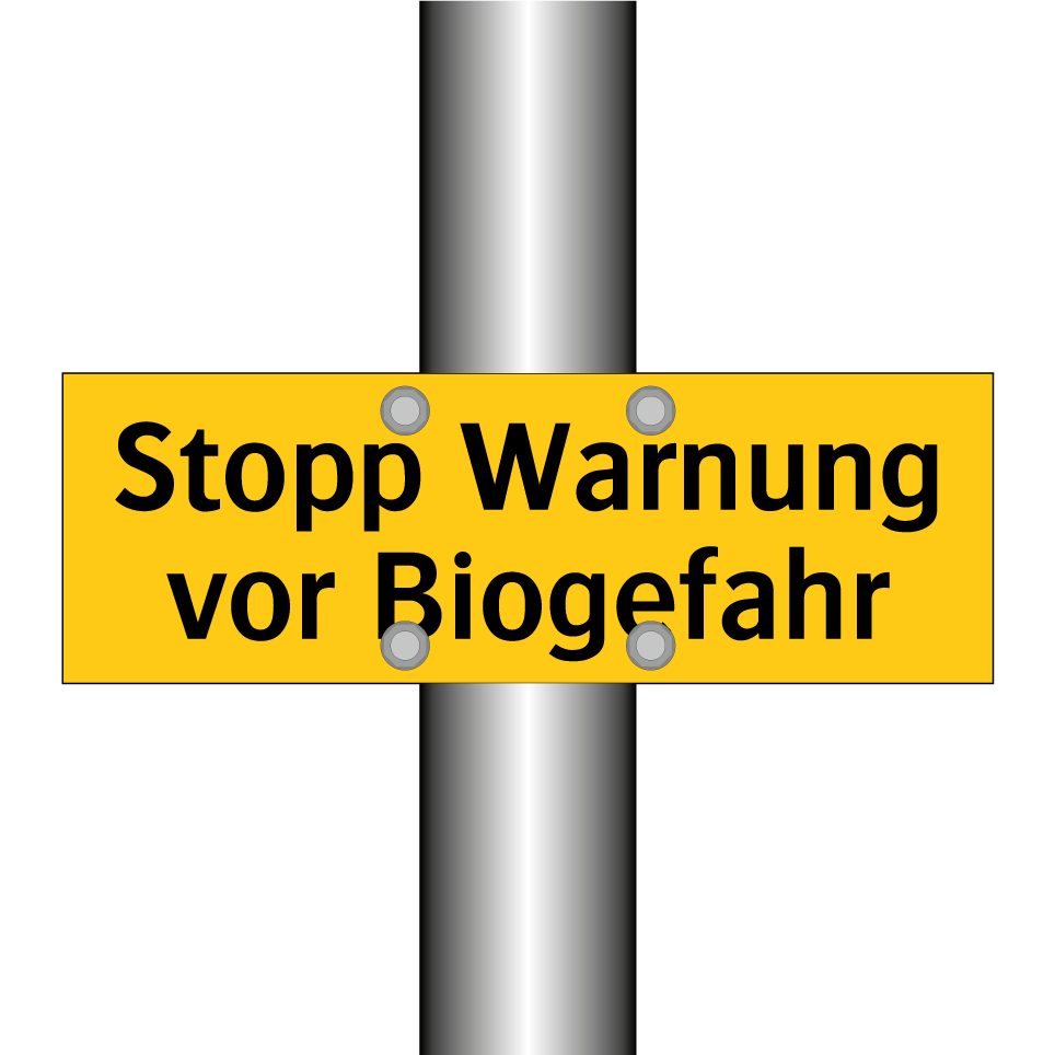 Warnschild mit dem Text Stopp Warnung vor Biogefahr