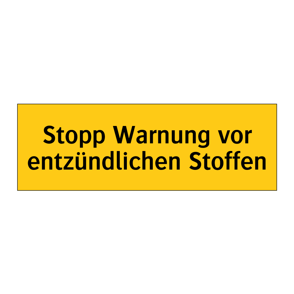 Warnschild mit dem Text Stopp Warnung vor entzündlichen Stoffen