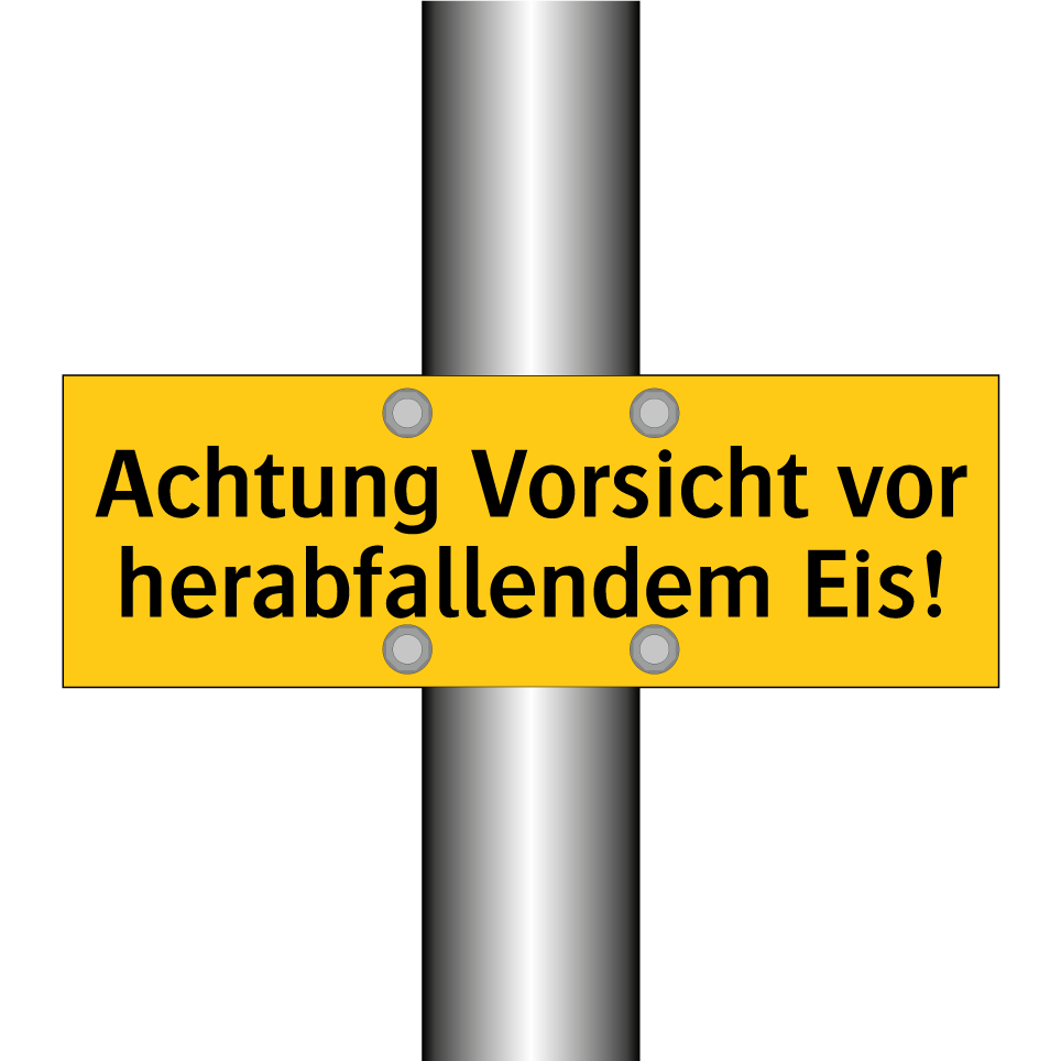 Warnschild mit dem Text Achtung Vorsicht vor herabfallendem Eis!