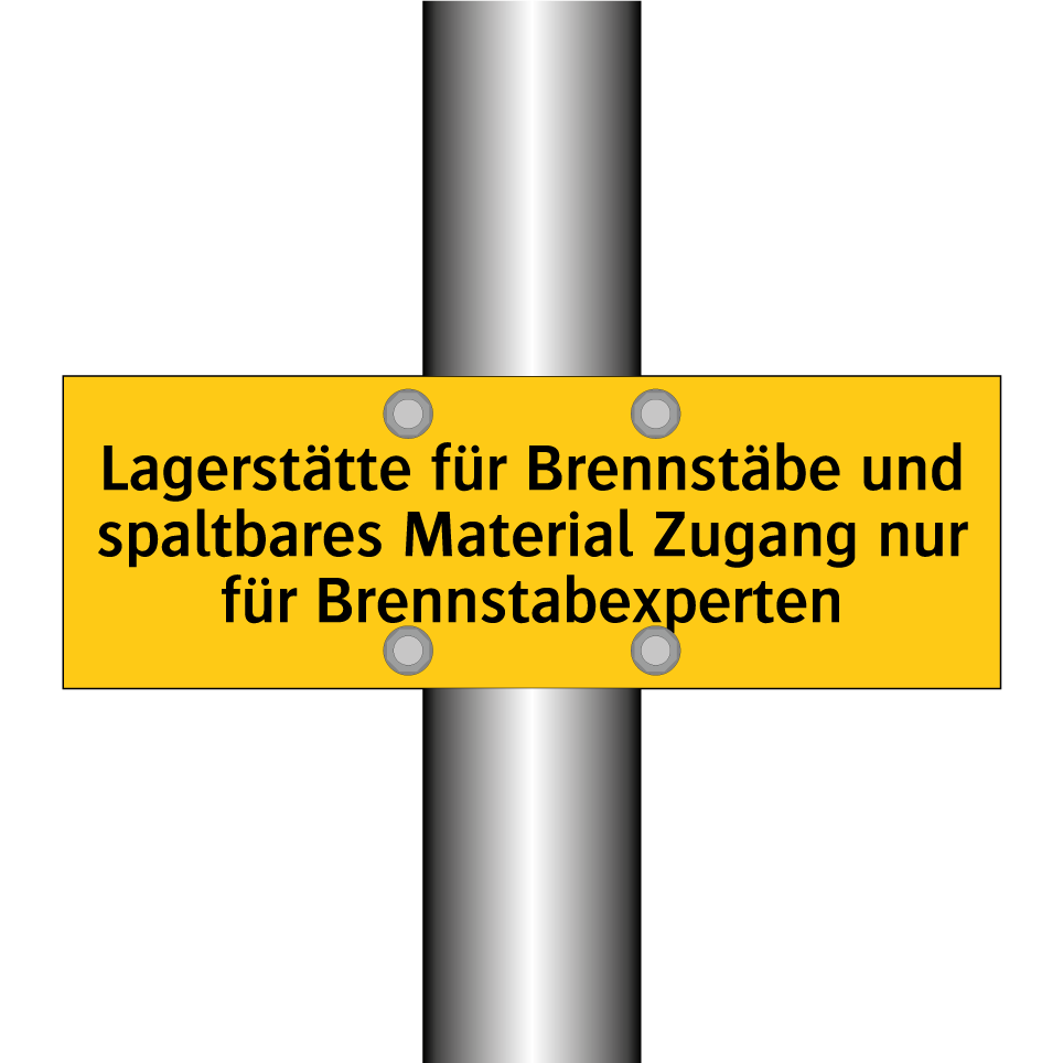 Warnschild mit dem Text Lagerstätte für Brennstäbe und spaltbares Material Zugang nur für Brennstabexperten