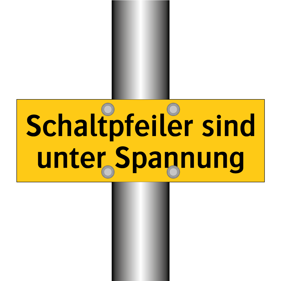 Warnschild mit dem Text Schaltpfeiler sind unter Spannung