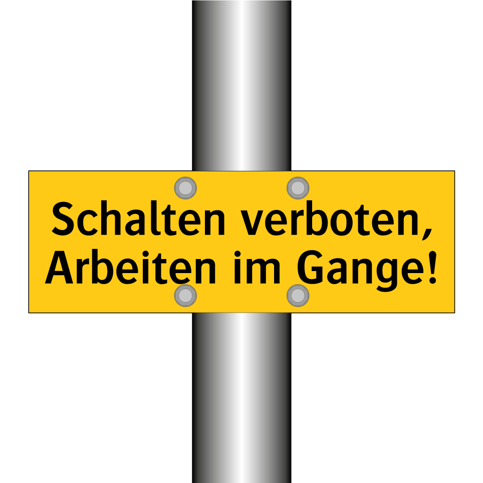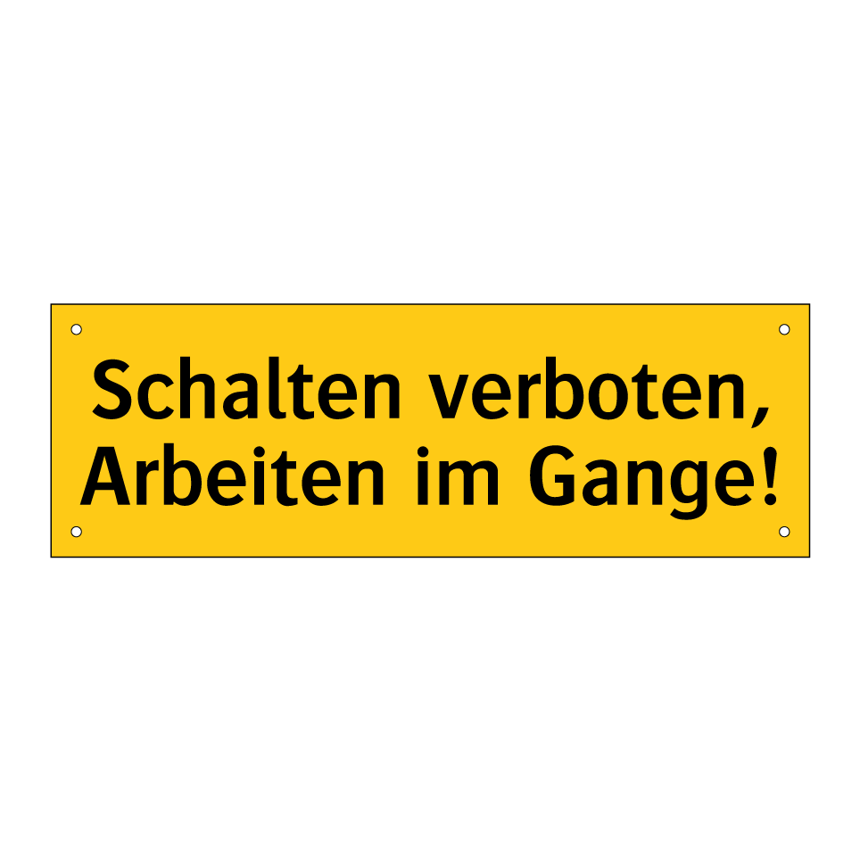 Warnschild mit dem Text Schalten verboten, Arbeiten im Gange!
