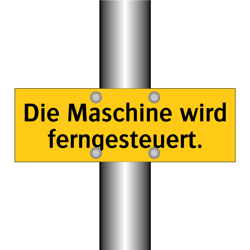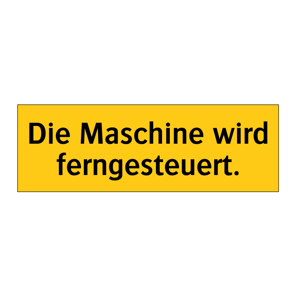Warnschild mit dem Text Die Maschine wird ferngesteuert.