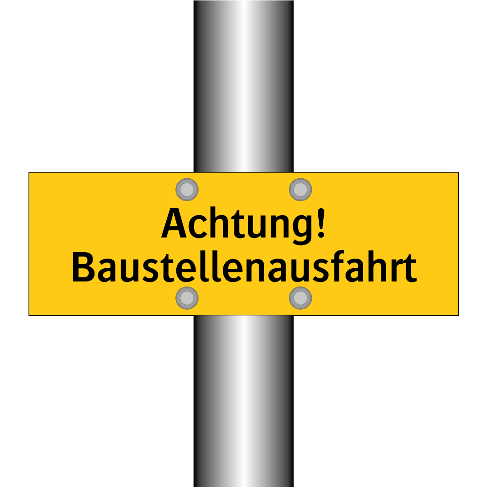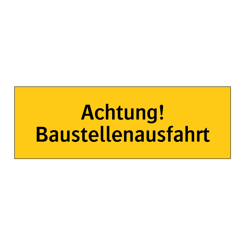 Warnschild mit dem Text Achtung! Baustellenausfahrt