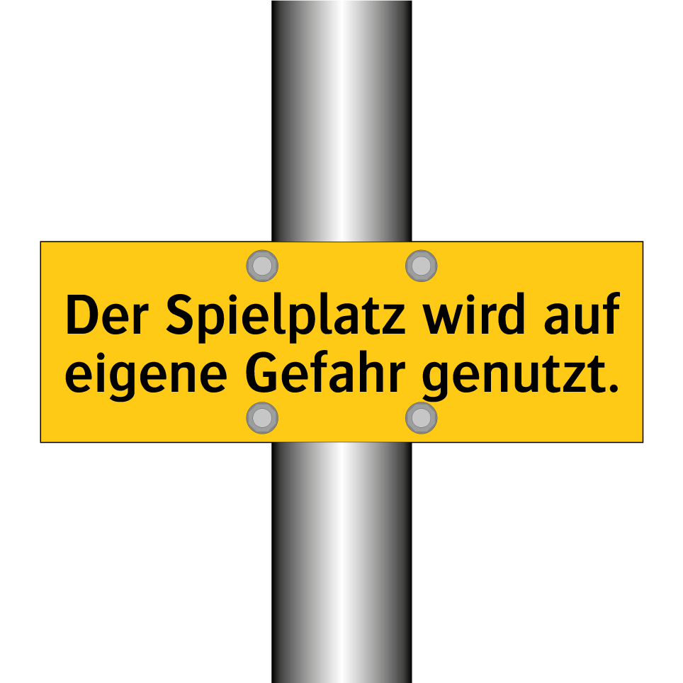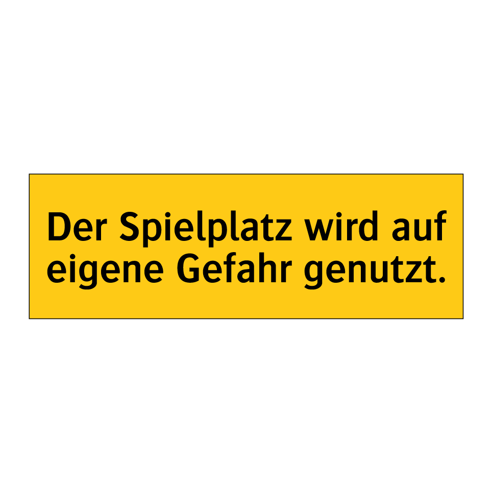 Warnschild mit dem Text Der Spielplatz wird auf eigene Gefahr genutzt.