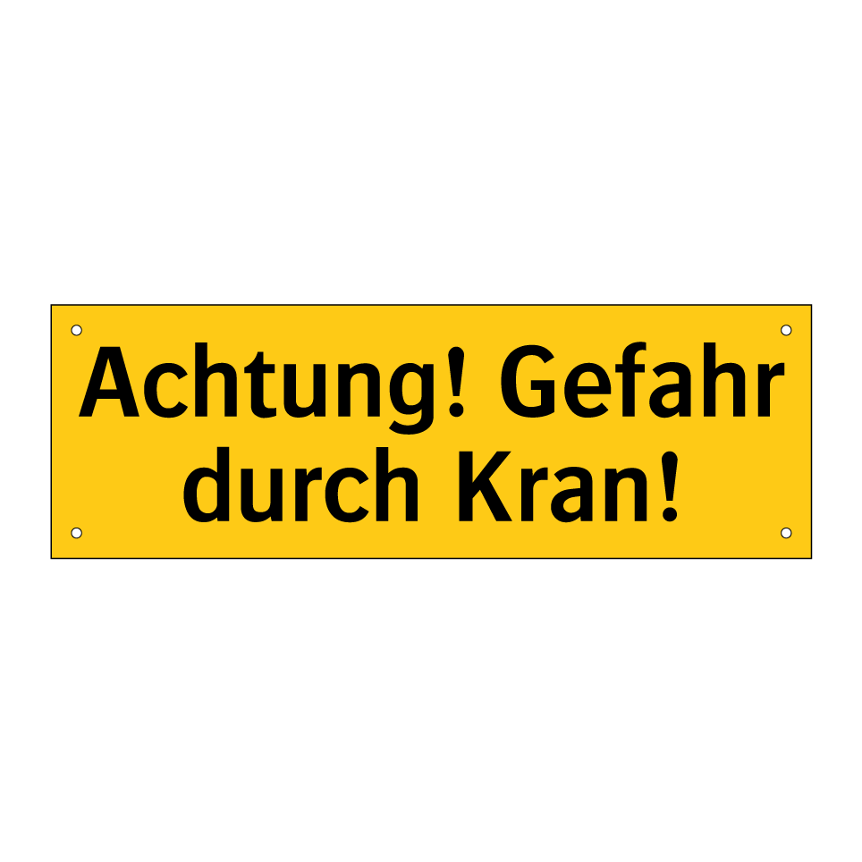 Diese Warnschild ist ein unverzichtbares Element für die Sicherheit in Bereichen, in denen Kräne im Einsatz sind. Es dient dazu, Personen auf mögliche Gefahren durch den Betrieb von Kränen aufmerksam zu machen und Unfälle zu vermeiden. Ideal für Baustellen, Lagerhallen oder Industrieanlagen, kann dieses Schild an gut sichtbaren Stellen wie Eingängen, Zäunen oder in der Nähe von Krananlagen angebracht werden. Die auffällige gelbe Hintergrundfarbe mit schwarzer Schrift sorgt dafür, dass die Warnung nicht übersehen wird. Schützen Sie Ihre Mitarbeiter und Besucher, indem Sie rechtzeitig auf potenzielle Gefahren hinweisen.