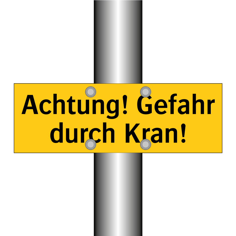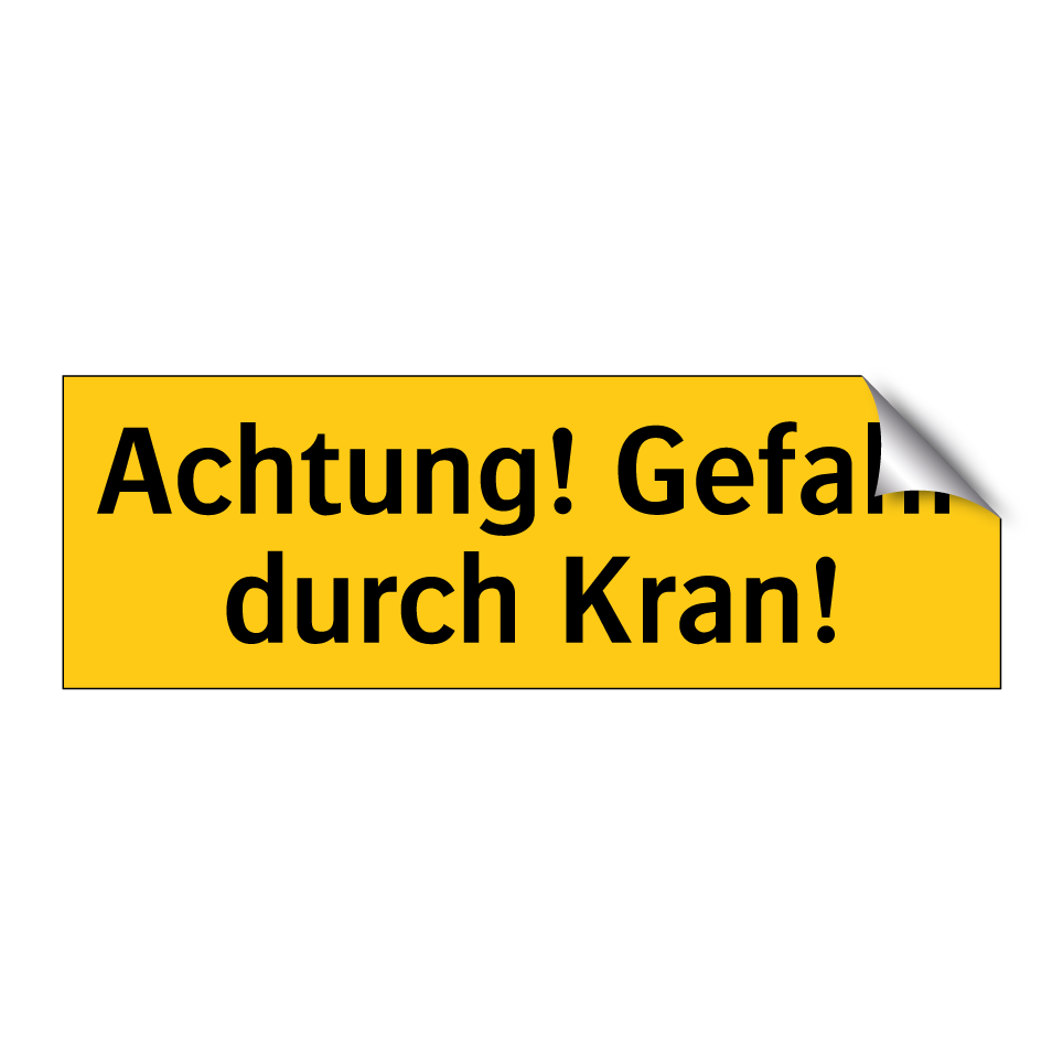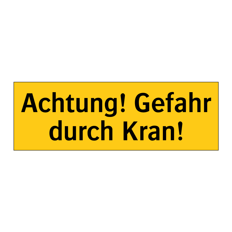 Warnschild mit dem Text Achtung! Gefahr durch Kran!