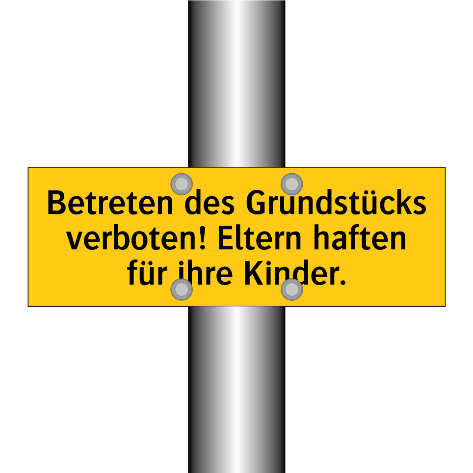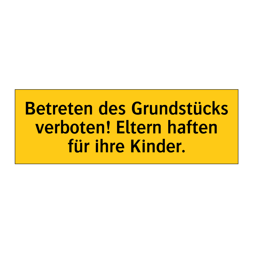 Warnschild mit dem Text Betreten des Grundstücks verboten! Eltern haften für ihre Kinder.
