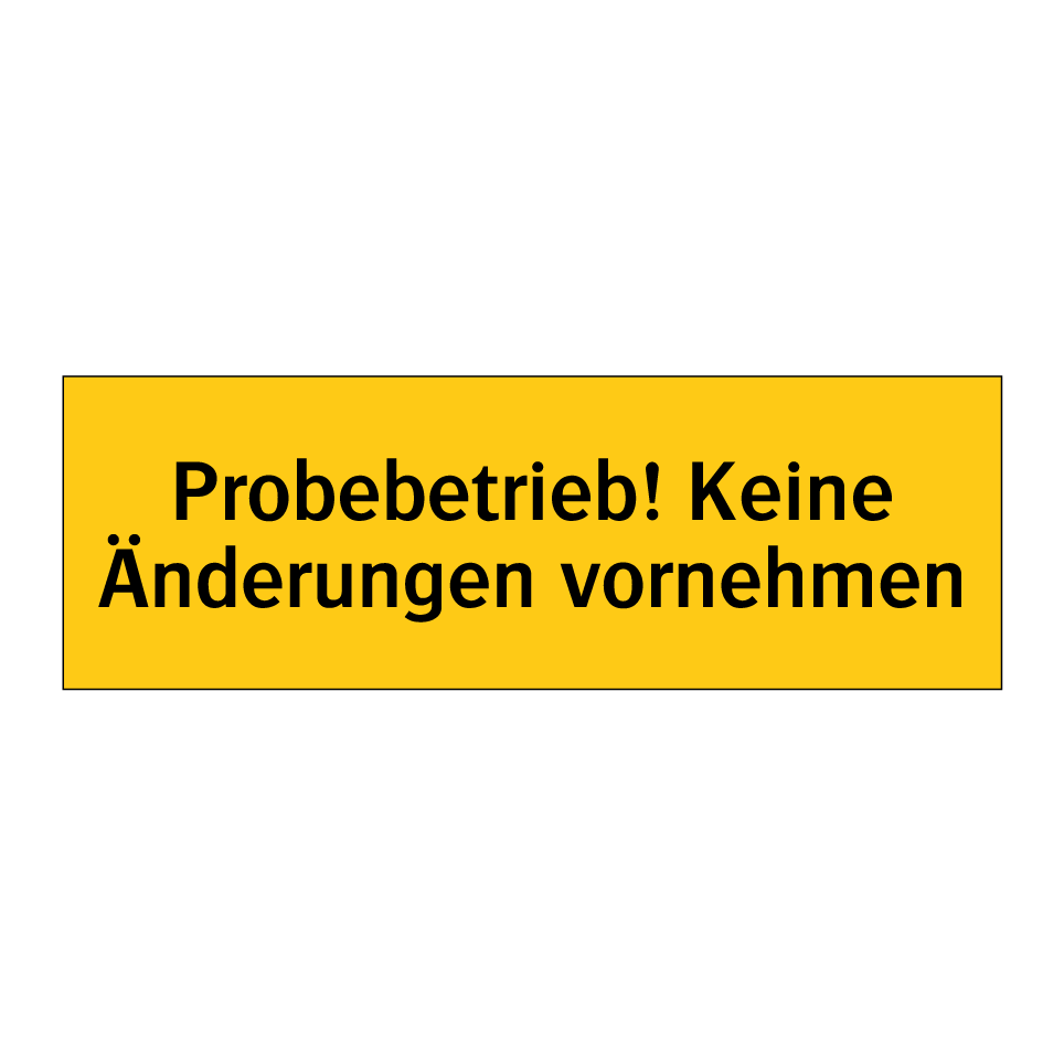 Warnschild mit dem Text Probebetrieb! Keine Änderungen vornehmen