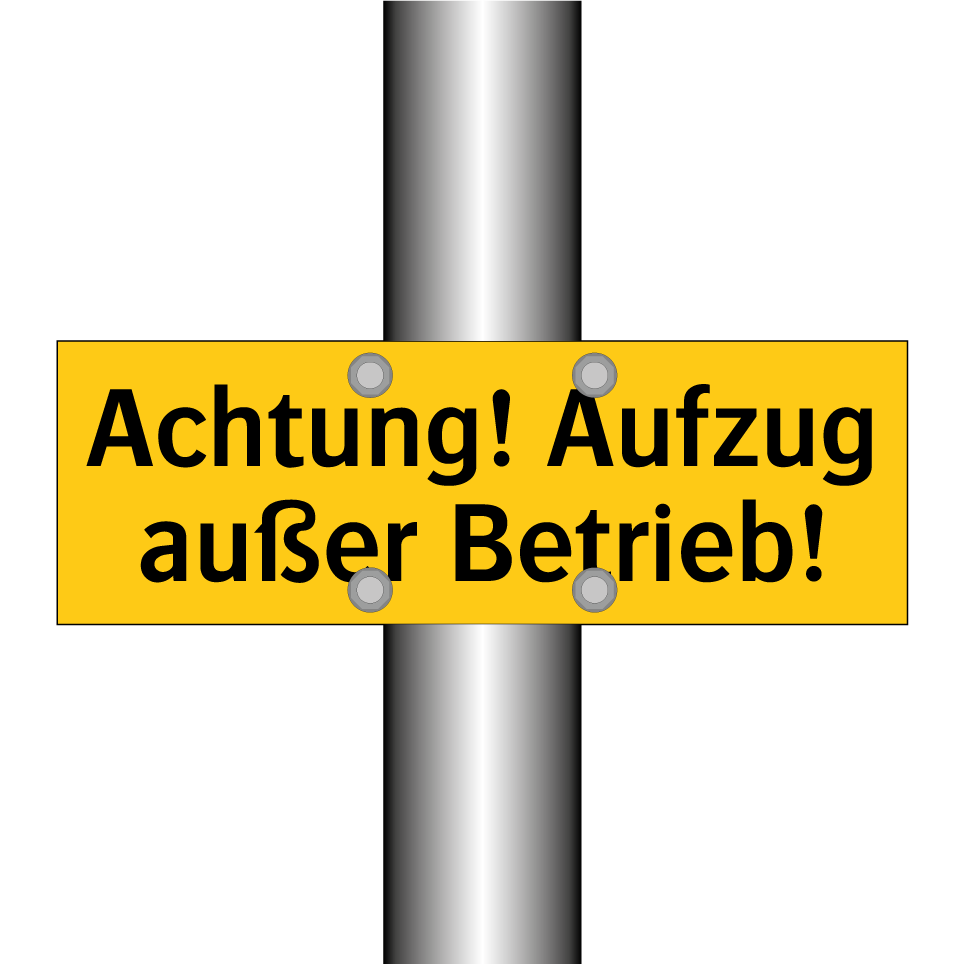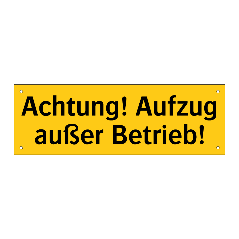 Warnschild mit dem Text Achtung! Aufzug außer Betrieb!