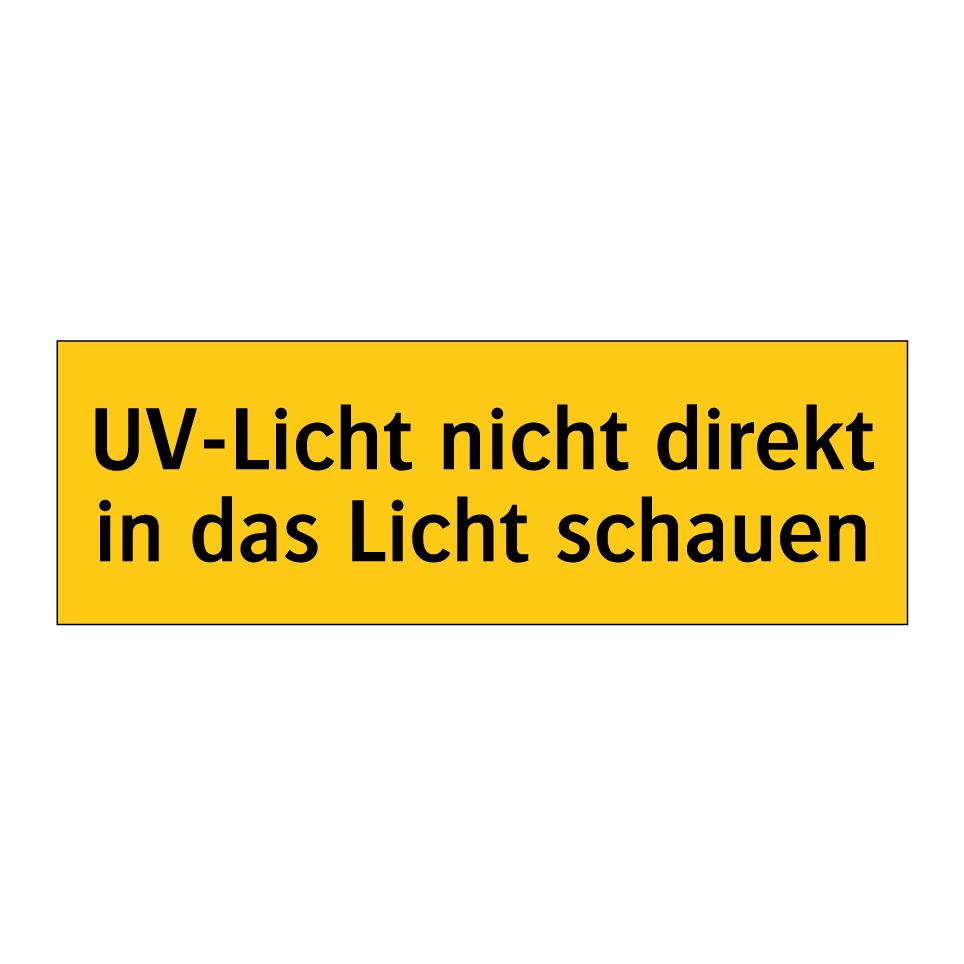 Warnschild mit dem Text UV-Licht nicht direkt in das Licht schauen