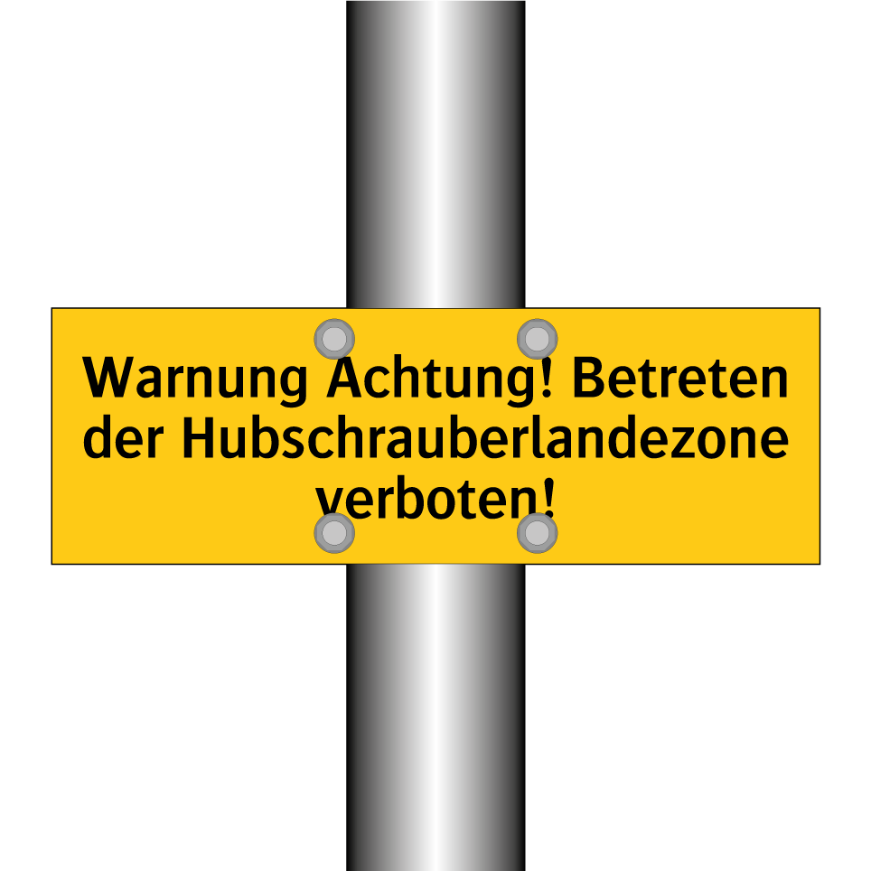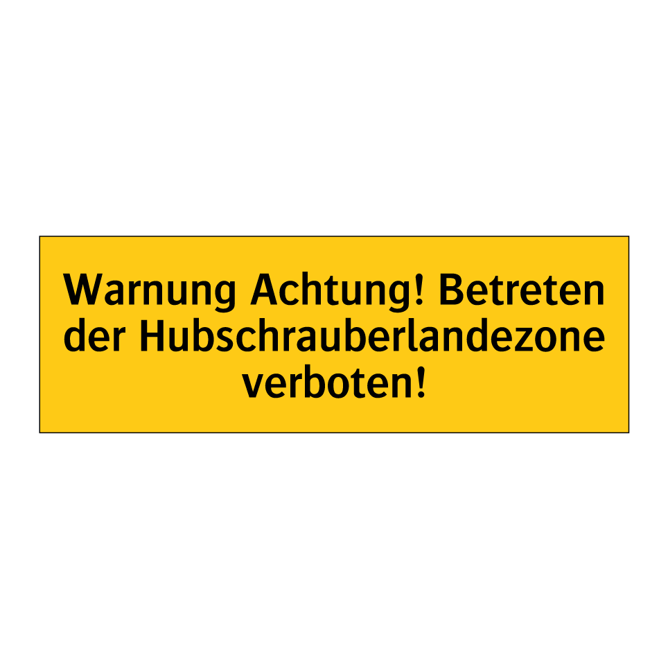 Warnschild mit dem Text Warnung Achtung! Betreten der Hubschrauberlandezone verboten!