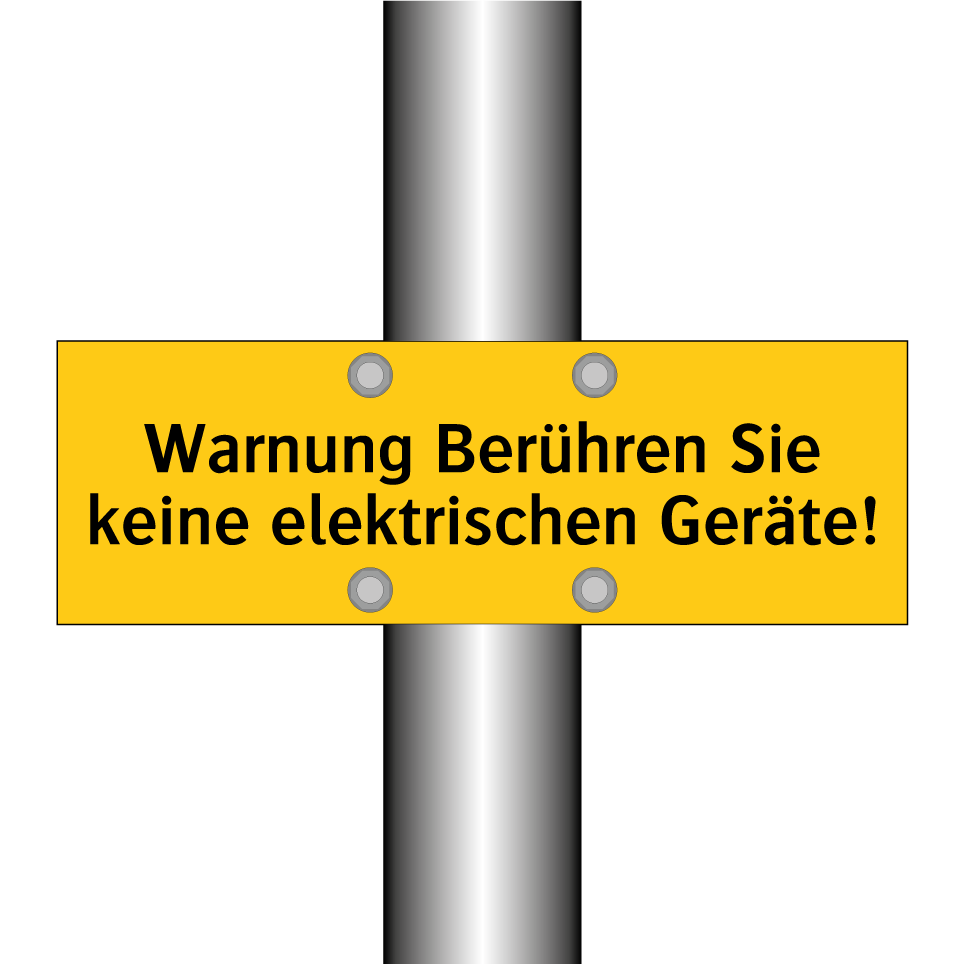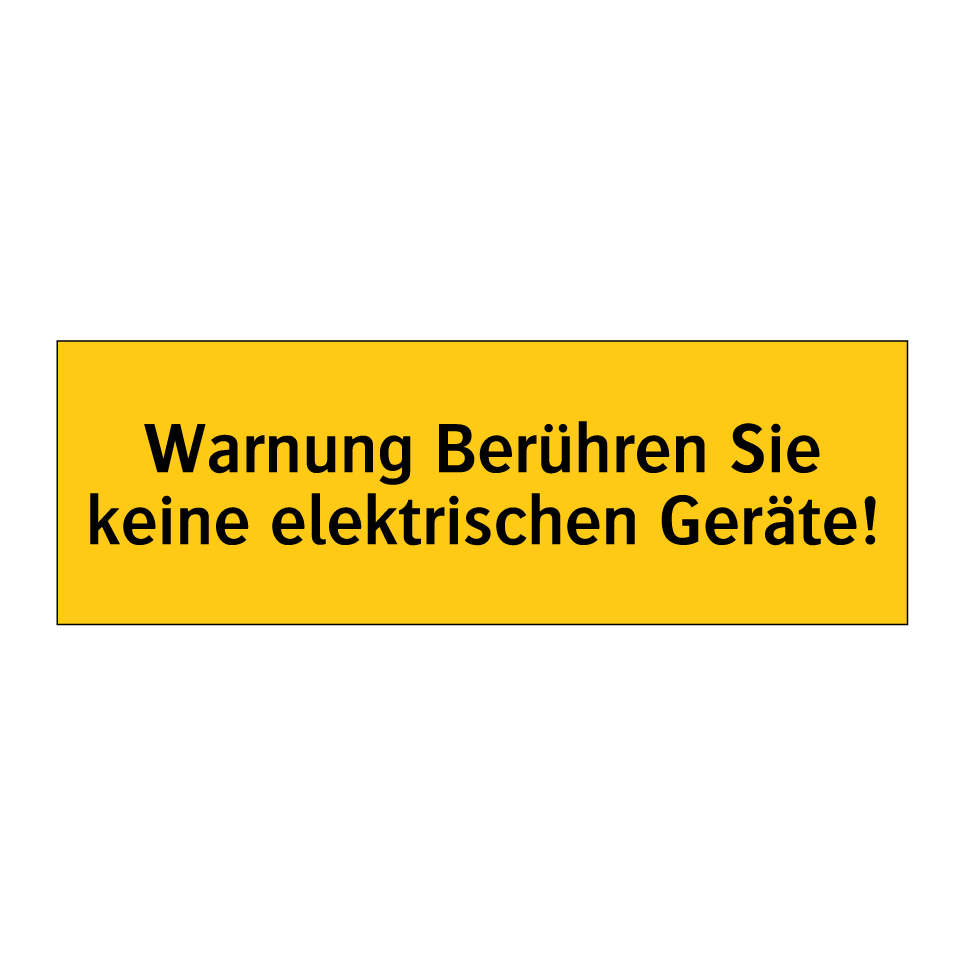 Warnschild mit dem Text Warnung Berühren Sie keine elektrischen Geräte!