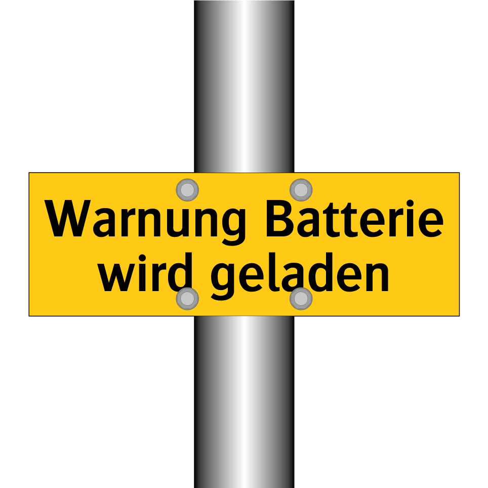 Warnschild mit dem Text Warnung Batterie wird geladen
