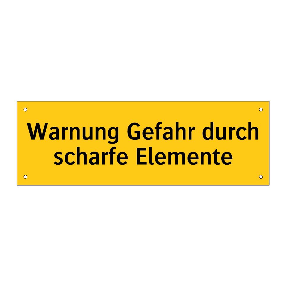 Warnschild mit dem Text Warnung Gefahr durch scharfe Elemente