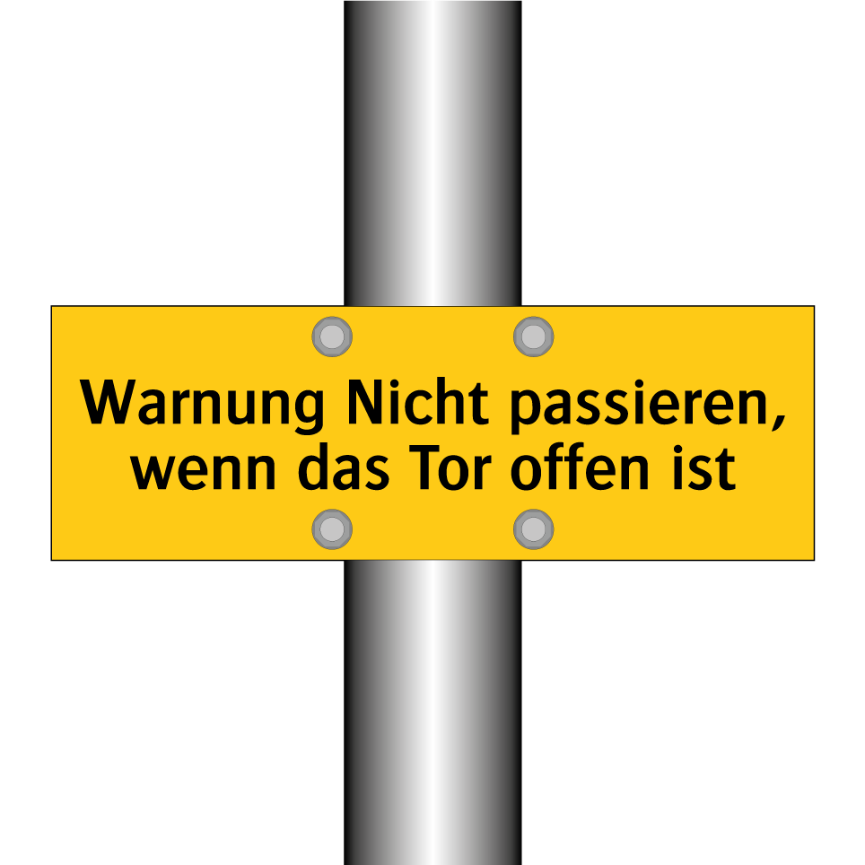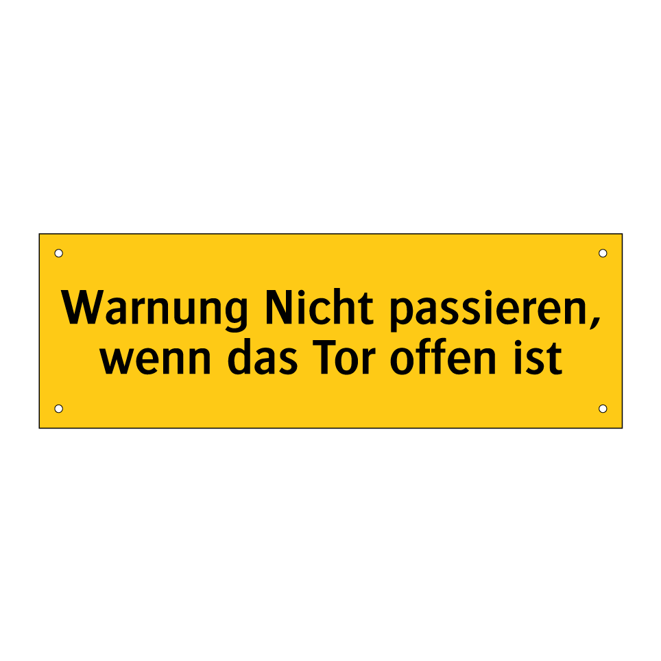 Warnschild mit dem Text Warnung Nicht passieren, wenn das Tor offen ist