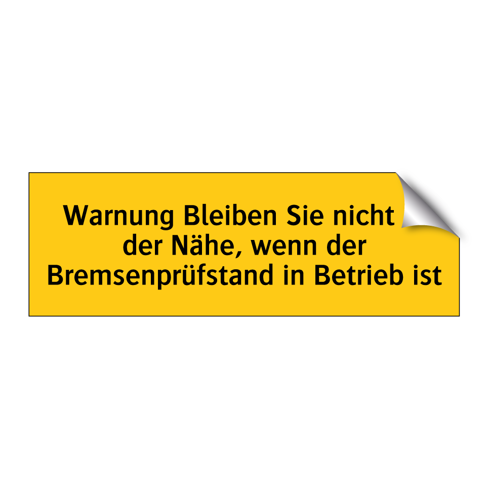 Warnschild mit dem Text Warnung Bleiben Sie nicht in der Nähe, wenn der Bremsenprüfstand in Betrieb ist