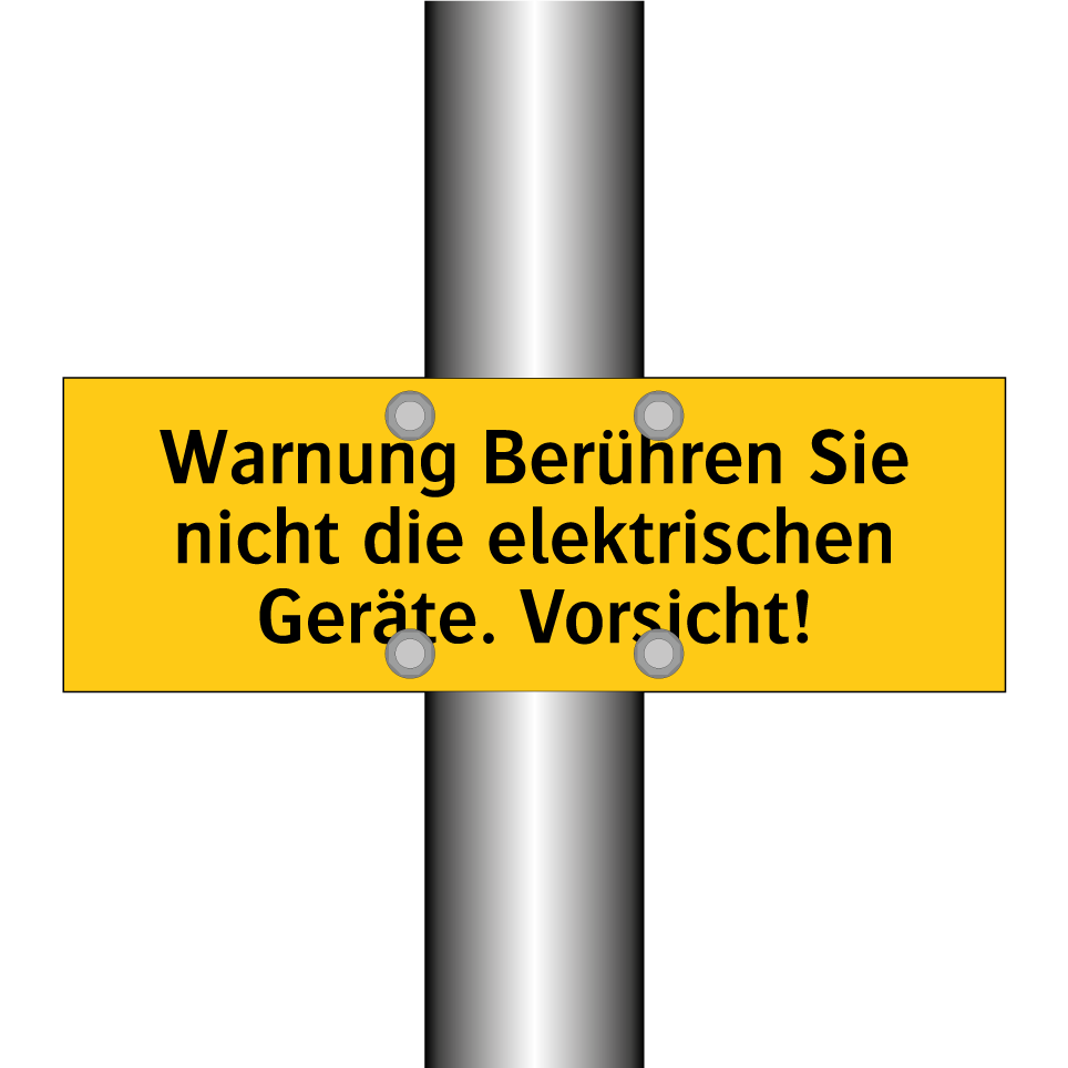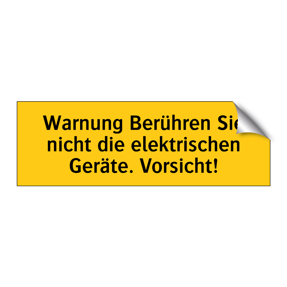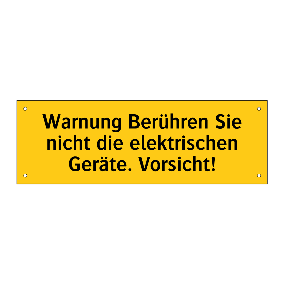 Warnschild mit dem Text Warnung Berühren Sie nicht die elektrischen Geräte. Vorsicht!