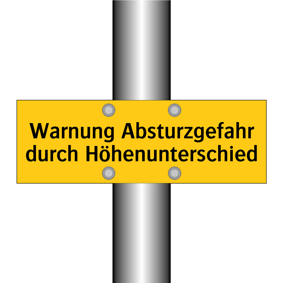 Warnschild mit dem Text Warnung Absturzgefahr durch Höhenunterschied